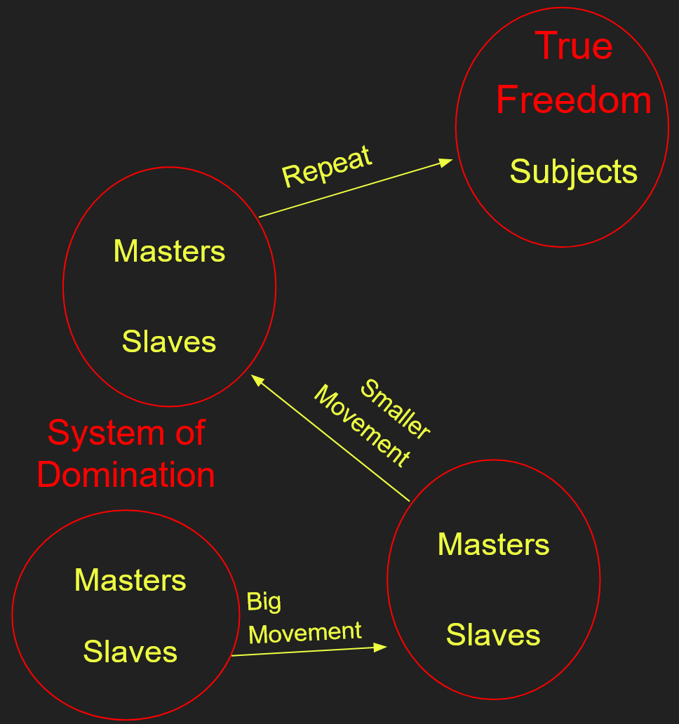 Since those who seek sustainability engage in the Praxis of the Master-subject by listening to and accommodating those who engage in identity-politics, it seems plausible that the intersectional logic will be taken to its ultimate conclusion, unless the sustainability-camp of left-wing philosophy eventually decides that the intersectionalists are going too far. At that point, there would have to be enough people in the sustainability-camp saying no in unison, or the ones that still engage in the Praxis of the Master will accommodate intersectionalists by getting the dissenters out of the way. Recalling Marcuse’s thoughts on tolerance, the dissent would be an impulse from the right, and be understood as leading towards fascism rather than liberation because it says something is good. In any case, it should be clear that there is no hard line separating sustainability and intersectionality as distinct attempts at creating a new sensibility; It is mainly the difference between the sensibility in the Master and the sensibility in the Slave, with the same end-goal in mind; The perfect world.