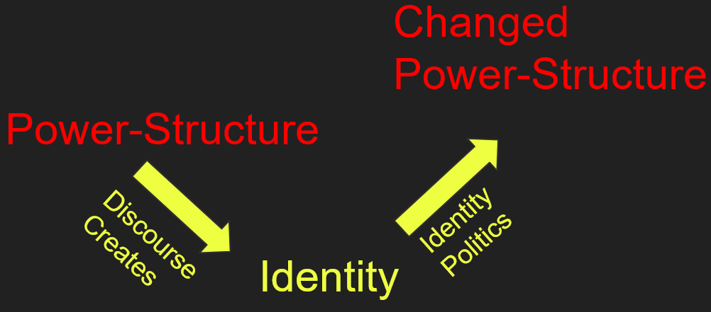 With intersectionality, everything I have brought up so far is melded into one soup. Even postmodernism, which raises serious questions for the other components of modern left-wing philosophy, was integrated. This was accomplished by seeing the power-structure, which some called the matrix of domination, as creating the identities it oppresses, by inventing and then perpetuating discourses that exclude and otherwise oppress based on something arbitrary. The oppression is now seen as happening for the same reason for all those who have the same identity, thereby creating a shared experience of oppression, a shared subjectivity. This subjectivity is the subjectivity of a Slave subject in the dialectic, and the shared experience legitimizes what by now was called identity-politics: Coming together around a shared identity to demand or implement changes in social reality. To use terms we have discussed previously this is simply Praxis at a large scale, if you prefer.