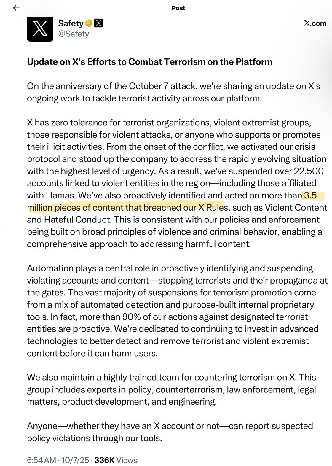 X Safety recently announced the removal of 3.5 million accounts for “…breaching our X rules...” I liked that post when I saw it. It felt like a necessary act of cleansing. But now I wonder — how does anyone verify a claim like that? Who decides what qualifies as threats, or manipulation, or dissent, when the judge is an algorithm auditing its own logic?