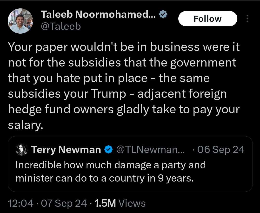This Liberal MP is openly commenting about their funding and commenting about where their funding comes from which is the government. Now that’s not just a comment. You have to understand that’s more than just a comment. That’s a reminder. It’s a reminder to know your place. It’s Flak.
