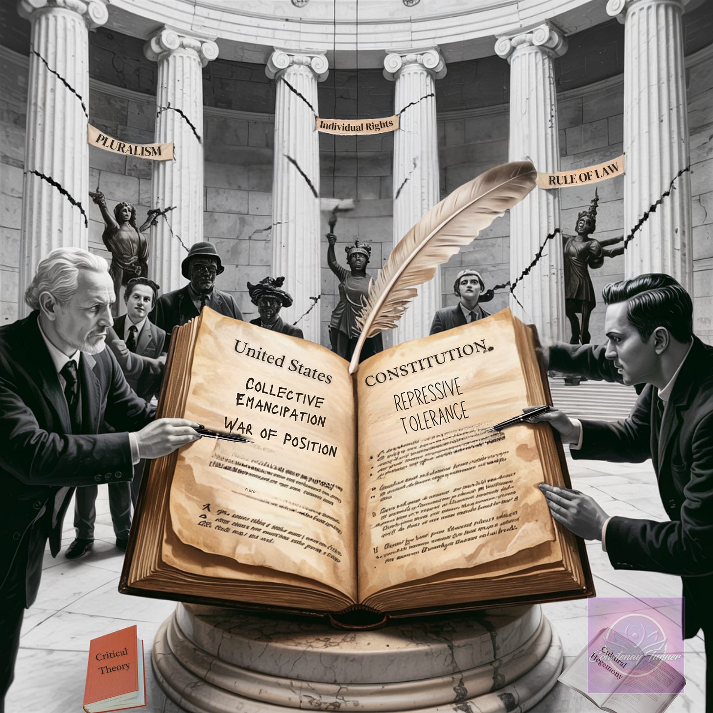 In the pages that follow, we will trace the intellectual genealogy of this moment, from Gramsci’s early influences to the spread of critical theory in America, from the philosophical underpinnings of the Frankfurt School to the contemporary battles over free speech, pluralism, and the rule of law. We will examine the points of conflict—and unexpected convergence—between the collectivist, revolutionary aspirations of the left and the increasingly radicalized strategies of the right. And we will ask what all of this means for the Constitution, for the idea of America, and for the possibility of a pluralistic, Constitutional republican society in an age of ideological warfare.