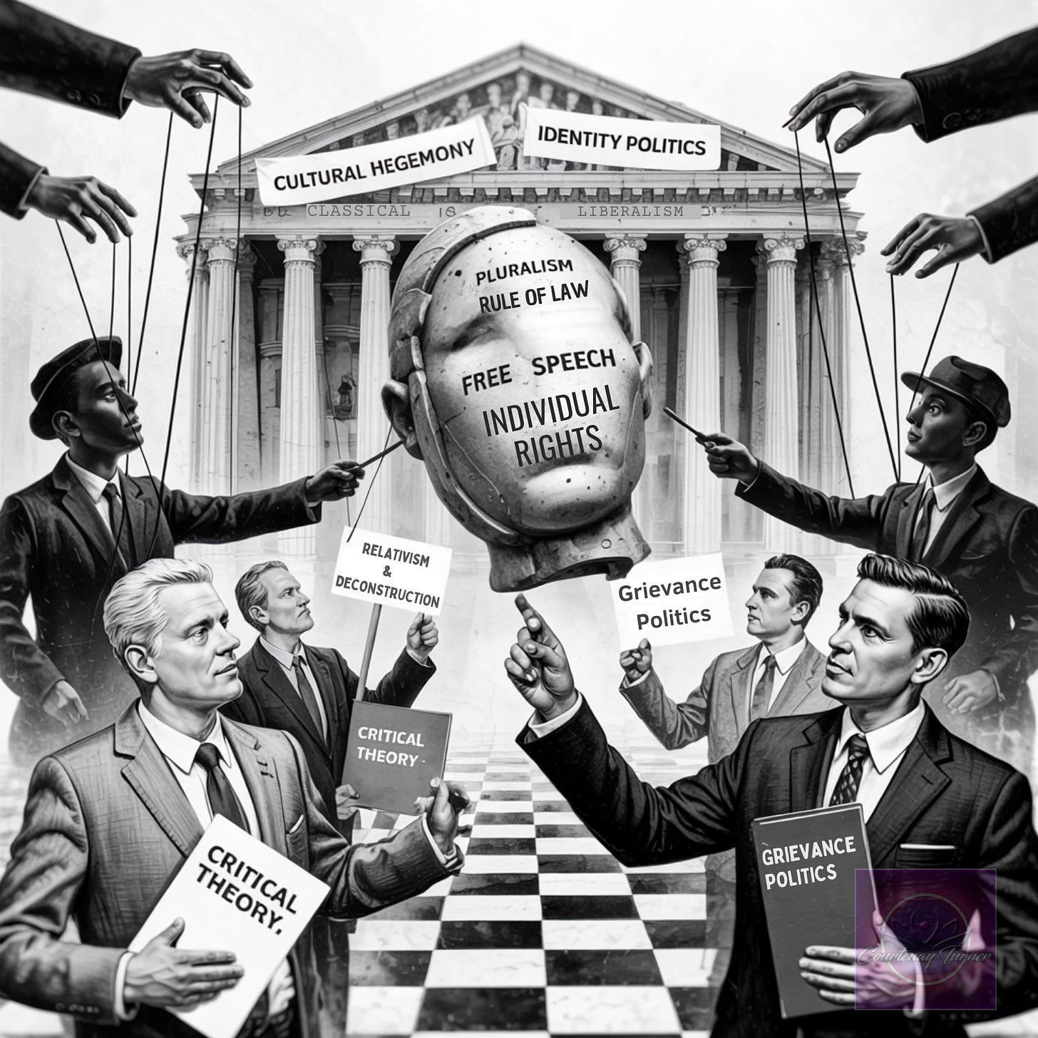 The woke right selectively uses critical theory, postmodernism, and poststructuralism to deconstruct liberal cultural dominance, reframe conservative grievances, and control discourse, mirroring tactics pioneered by Gramsci and the Frankfurt School but redirecting them toward nationalist, traditionalist, or anti-progressive goals. By adopting deconstruction, relativism, and identity politics, they challenge perceived liberal hegemony clashing with the U.S. Constitution’s emphasis on individual rights, pluralism, and objective legal principles. This strategic mimicry reflects a broader cultural shift where academic theories are repurposed for political ends.